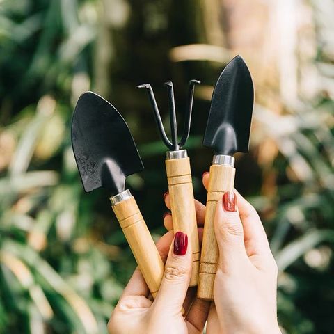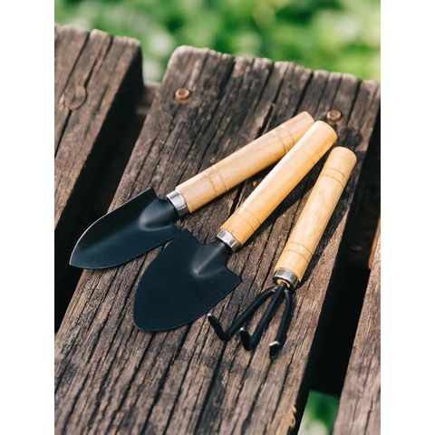 - Bộ dụng cụ làm vườn với 3 dụng cụ gồm: 1 xẻng xúc đất, 1 cấy xới đất và 1 bàn cào đất. Bộ dụng cụ gọn nhẹ, thuận tiện cho việc chăm sóc các tiểu cảnh mà không làm bẩn tay.